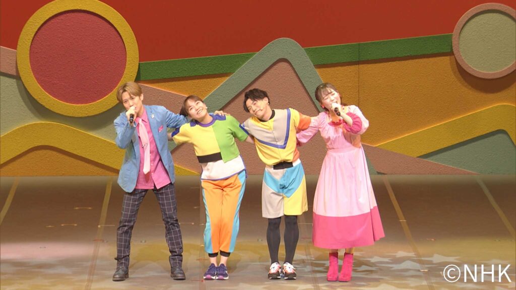そのほか、個性的な衣装が印象的な「おまめ戦隊ビビンビ〜ン」「ごめんください、めんください。」、新体操パフォーマンスを取り入れた「おおきなわがあれば」「夢の中のダンス」など、さまざまなコンセプト別のうたクリップ映像を楽しめる内容です。